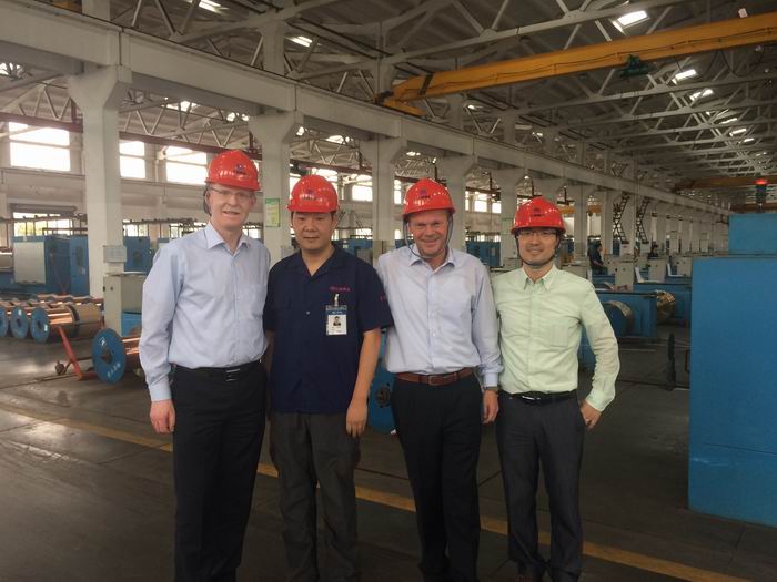 2015年9月24日,萊尼集團(tuán)亞太區(qū)總裁JerryCUMMINS先生、萊尼德國(guó)總部采購(gòu)高級(jí)副總裁RichardPAGLIA先生以及中國(guó)事業(yè)區(qū)戰(zhàn)略采購(gòu)總監(jiān)韓軍先生一行三人來(lái)江潤(rùn)銅業(yè)考察交流,公司總經(jīng)理駱偉棟先生熱情接待了萊尼客人一行。 江潤(rùn)銅業(yè)與萊尼集團(tuán)合作十余年之久,由于在復(fù)合導(dǎo)體領(lǐng)域?yàn)槠涮峁┝硕喾N解決方案,降低了生產(chǎn)成本,深受其好評(píng),雙方建立了長(zhǎng)期戰(zhàn)略性合作伙伴關(guān)系。通過(guò)本次訪問,江潤(rùn)銅業(yè)先進(jìn)的生產(chǎn)設(shè)備、優(yōu)質(zhì)的產(chǎn)品及一流的員工隊(duì)伍給客人留下了深刻的印象,雙方表示將在目前良好合作的基礎(chǔ)上進(jìn)一步加強(qiáng)合作,實(shí)現(xiàn)互惠共贏。