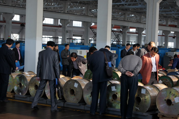 11月10日,安徽省電線電纜商會(huì)參觀團(tuán)來到江潤銅業(yè)。在公司營銷部經(jīng)理陪同下,商會(huì)理事們參觀了銅連鑄連軋車間、復(fù)合銅線車間、銅絞線車間,深入了解到了高品質(zhì)的銅加工工藝。此次安徽省電線電纜商會(huì)赴電纜城考察,是為發(fā)展本地線纜事業(yè)引進(jìn)先進(jìn)技術(shù)。